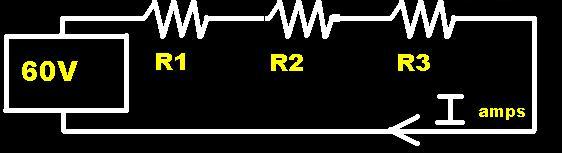 I = 60v/Rt= amps(current).